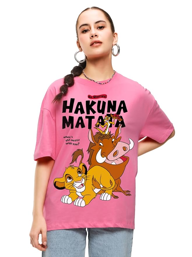 Bewakoof Official Disney Merchandise Hakuna Matata Women’s 100% Cotton Graphic Print Oversized Fit Round Neck T-Shirt